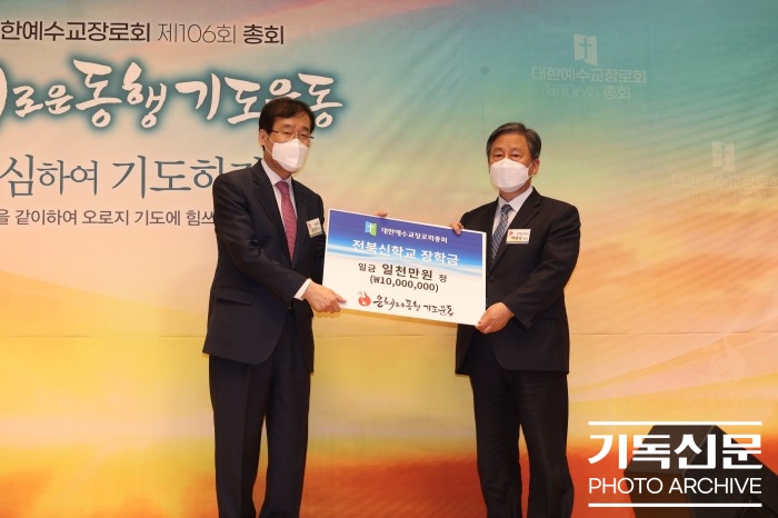 2022년 4월 제106회기 총회 전북신학교 장학금 일천만원 전달 페이지 정보 작성자 최고관리자 작성일 2025.09.19 17:19 분류 총회장 및 총회임원 활동 1 조회 목록 본문 2022년 4월 제106회기 총회 전북신학교 장학금 일천만원 전달 장소: 새에덴교회 0 좋아요 0 싫어요 SNS 공유 신고 차단 댓글 0 로그인한 회원만 댓글 등록이 가능합니다. 이전글 다음글 목록